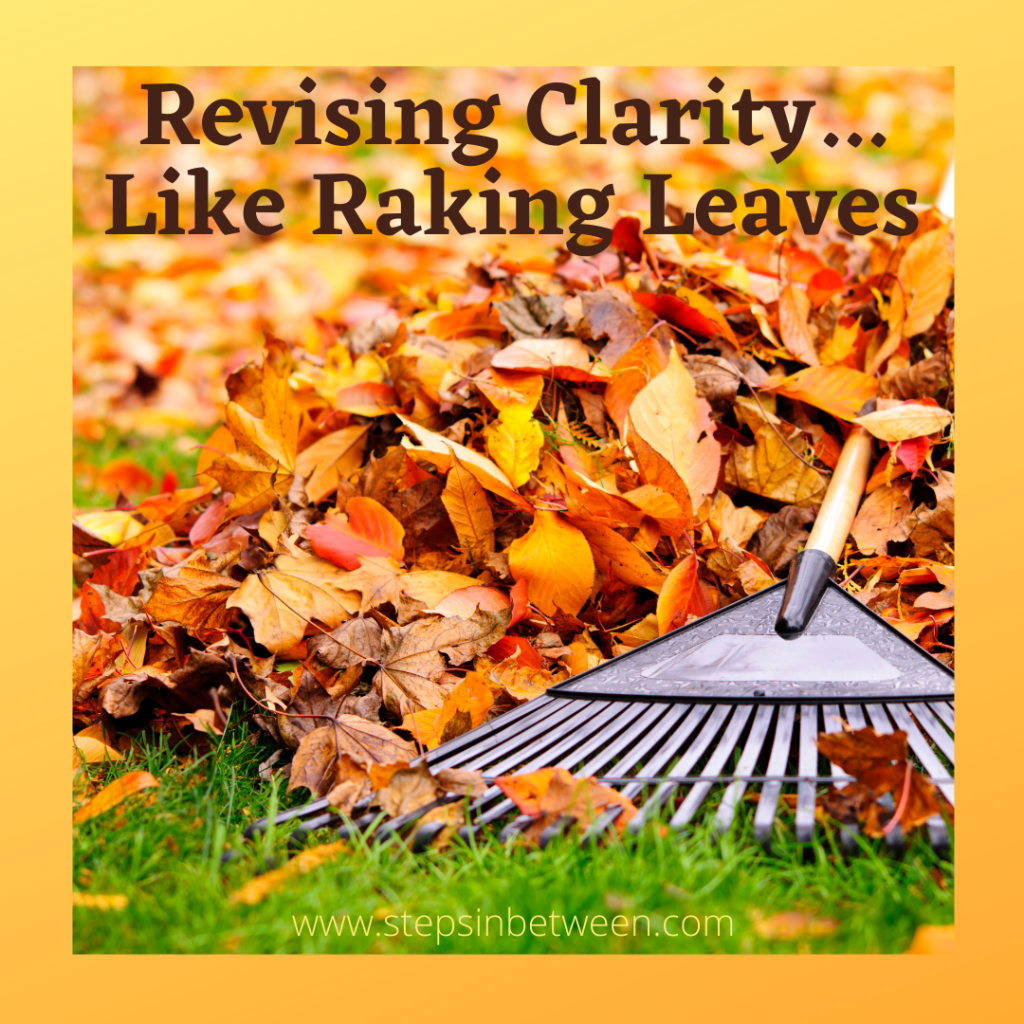 Sometimes I run with language too far in my manuscripts. This morning, as I peered out my window, the season called to me, and I listened. How timely that I am editing my book in October. Instead of combing over every sentence for mistakes, I imagined myself gripping a rake with both hands. With momentum, I pulled its teeth across the cold ground, collecting excess words, disguised in bright bursts of gold and russet. Then, with a glimpse of regret, I heaved them into the green yard waste bin.